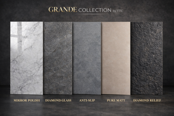 Grande Collection nâng tiêu chuẩn đó lên một tầm cao hơn - bằng thiết kế có chiều sâu, tính đồng bộ kỹ thuật và nền tảng thương hiệu vững chắc từ TTC Ceramic Tiles.