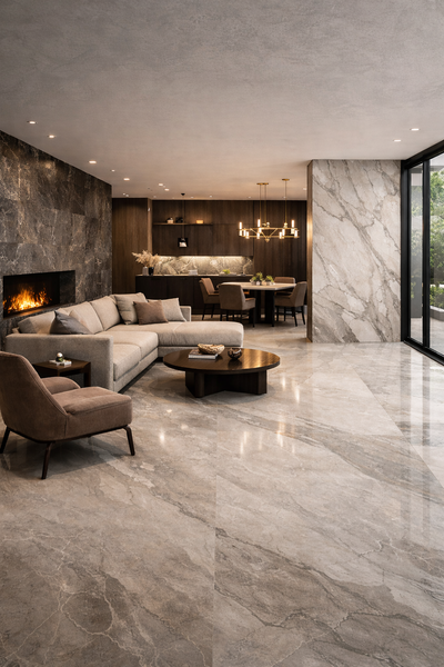 Sở hữu bề mặt mô phỏng vật liệu tự nhiên chân thực, hiệu ứng vân đá sang trọng cùng kích thước lớn tạo cảm giác liền mạch, bộ sưu tập giúp mở rộng thị giác và nâng tầm tổng thể không gian. Đây là lựa chọn lý tưởng cho phòng khách, sảnh lớn, biệt thự và các công trình cao cấp theo đuổi phong cách tối giản - tinh tế - bền vững theo thời gian.