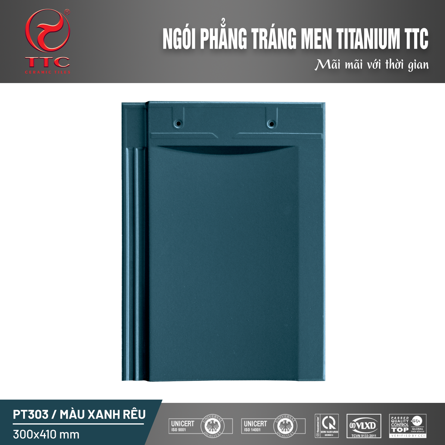 | Thương hiệu | NGÓI TRÁNG MEN TTC | Kích thước | 300x410 mm |