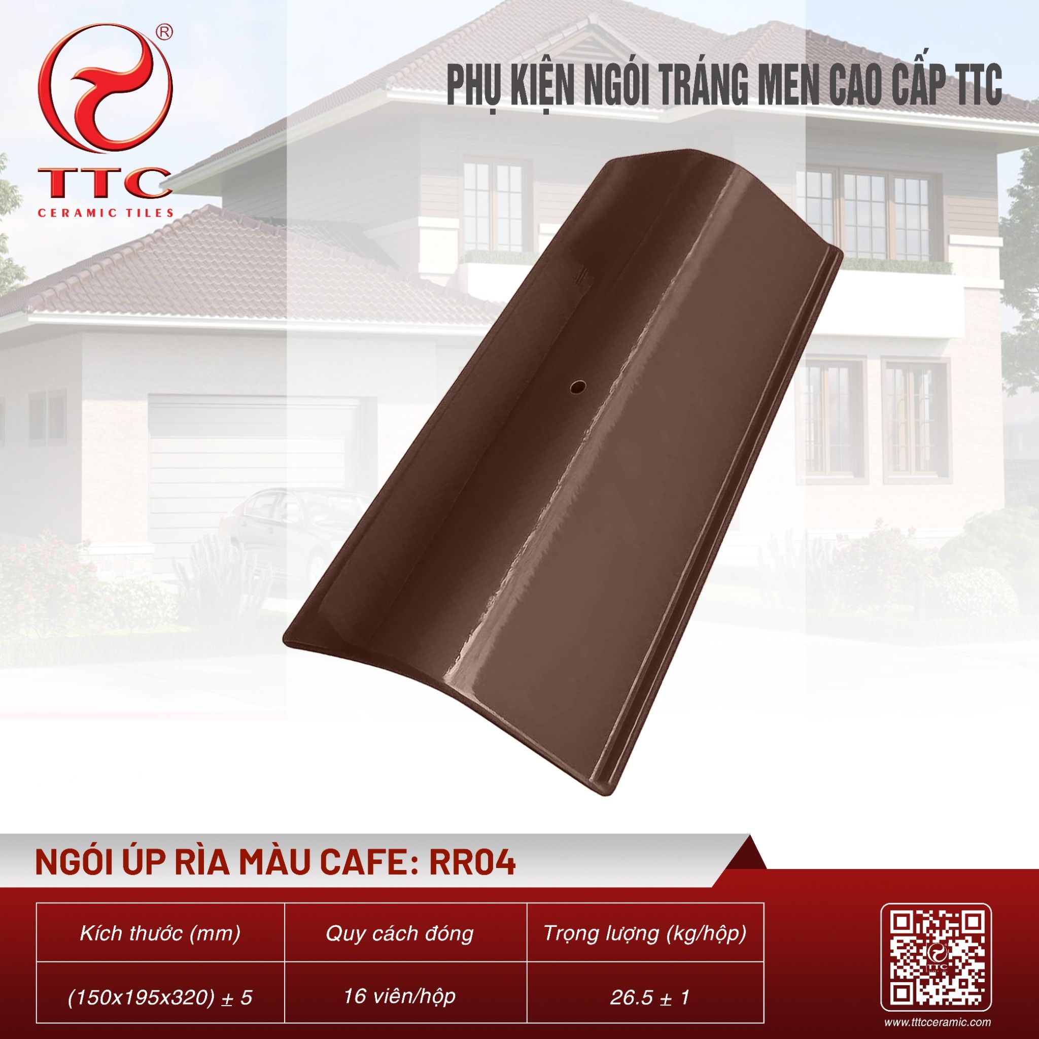 | Thương hiệu | PHỤ KIỆN NGÓI TRÁNG MEN TTC | Kích thước | (150x195x320) ± 5 mm |