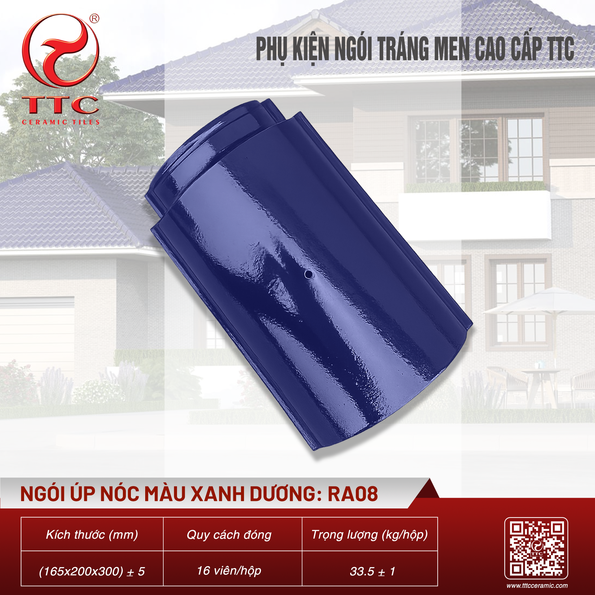 | Thương hiệu | PHỤ KIỆN NGÓI TRÁNG MEN TTC | Kích thước | (165x200x300) ± 5 mm |