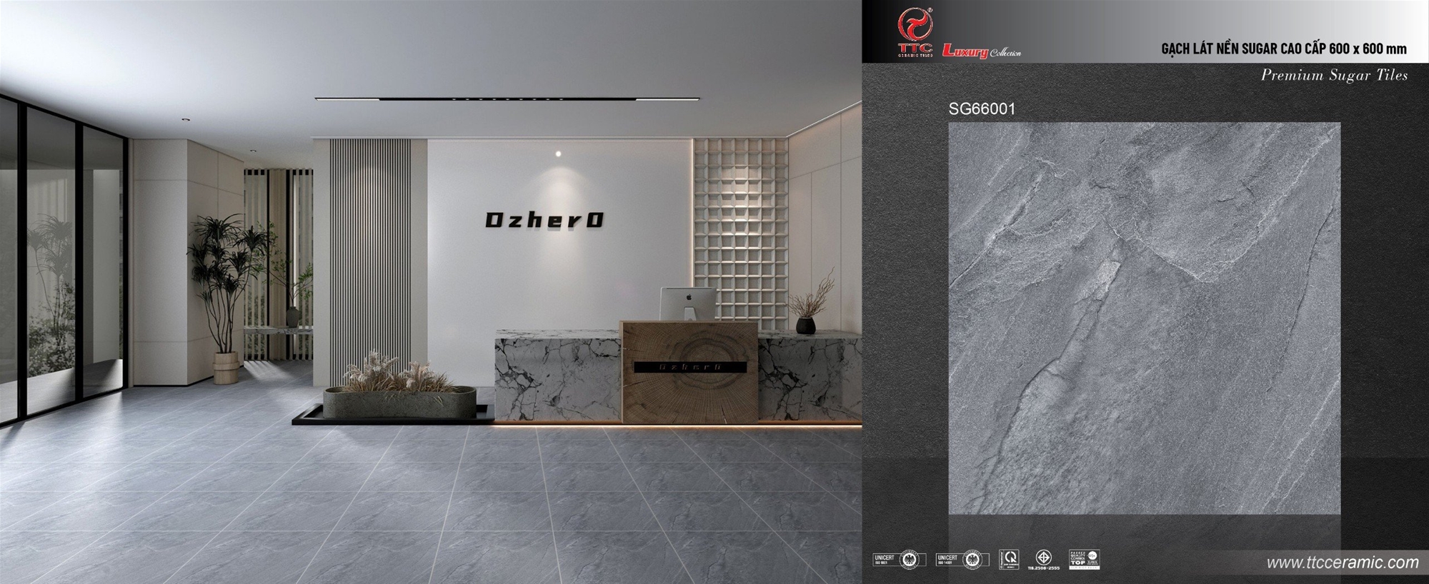 | Màu sắc | Màu xám đậm vân đá, giả xi măng tự nhiên | Dòng sản phẩm | Ceramic, men sugar |