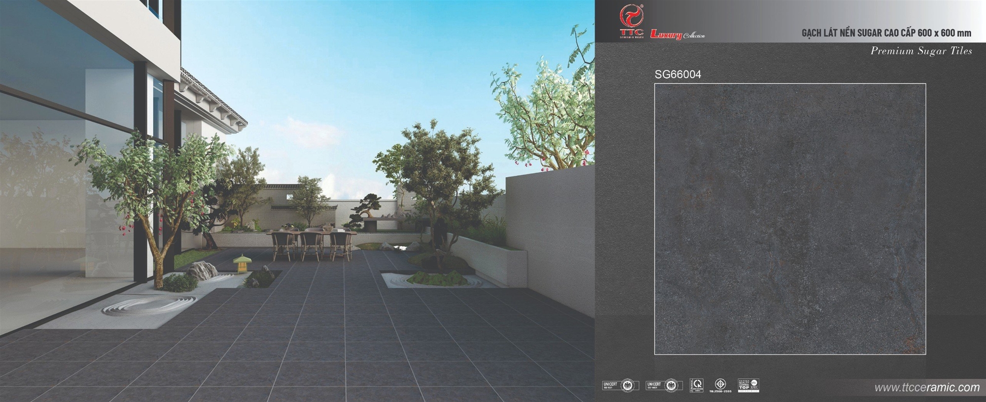| Màu sắc | Màu ghi đậm - vân đá tự nhiên | Dòng sản phẩm | Ceramic - Men sugar |