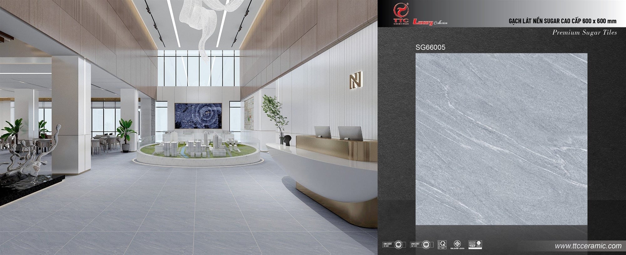 | Màu sắc | Màu ghi vân đá tự nhiên | Dòng sản phẩm | Ceramic - Men Sugar |