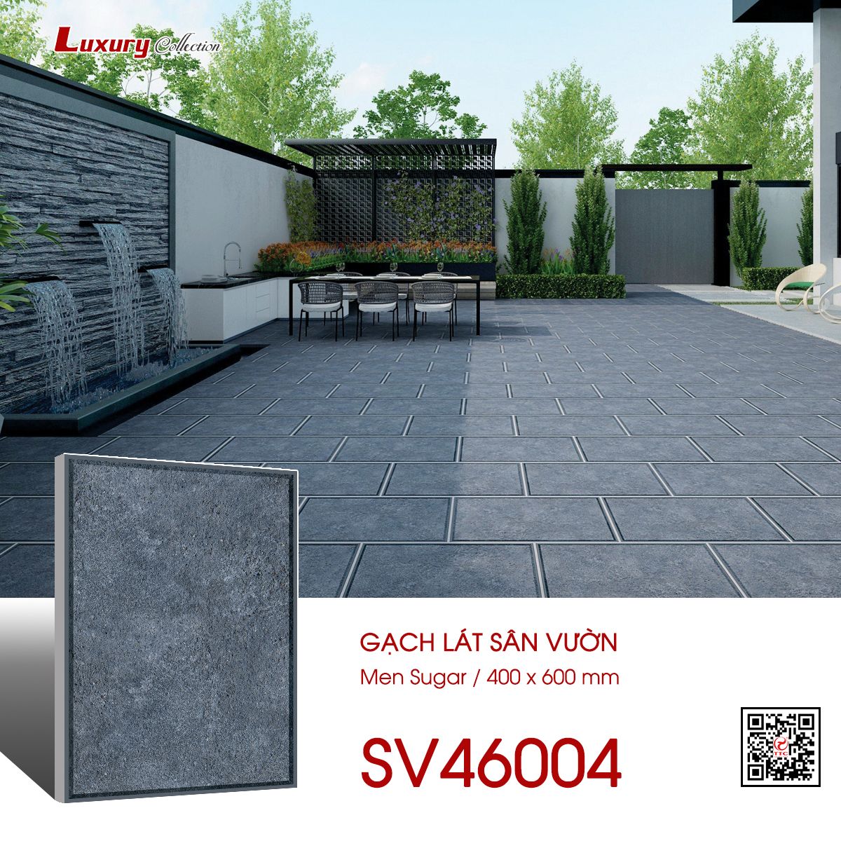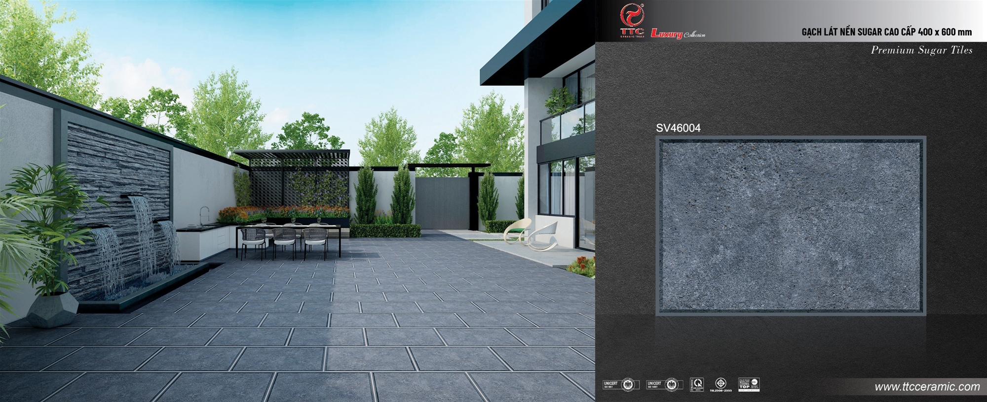 | Màu sắc | Màu xám giả đá xi măng tự nhiên | Dòng sản phẩm | Ngoại thất men sugar |