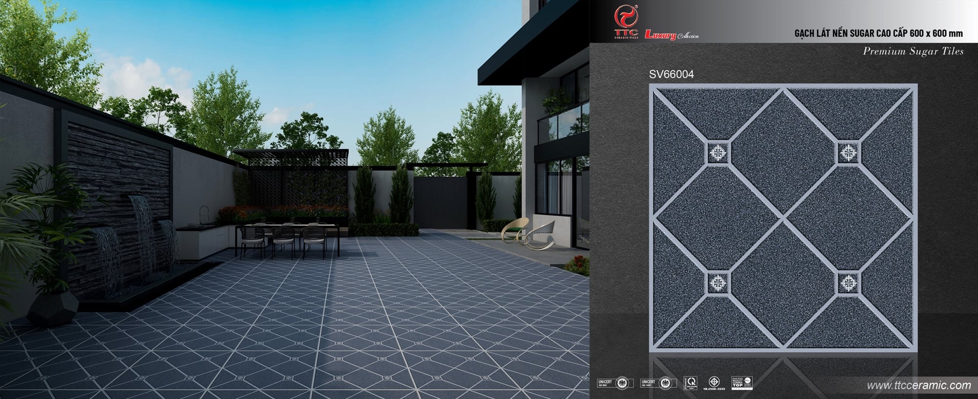 | Bề mặt | Men Sugar, gam màu xám đậm trung tính, bề mặt đồng nhất với hiệu ứng bề mặt như bề mặt bê tông - xi măng mài nhẹ | ||